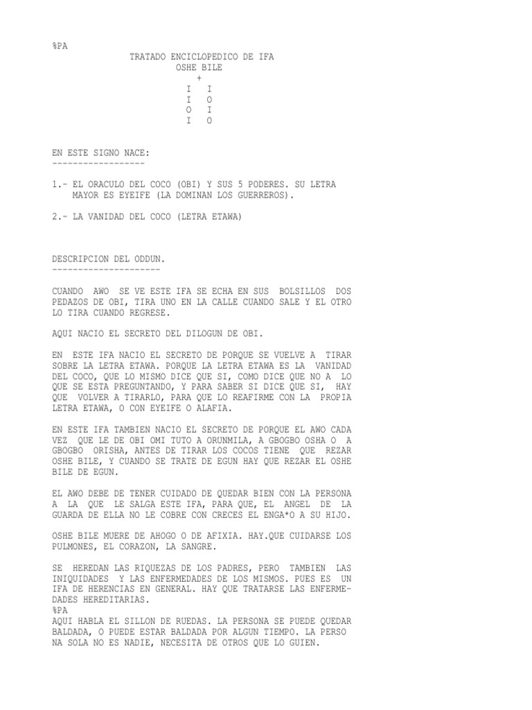 Oshe Bile Tratado De Los Signos De Ifa Oshaeifa Com