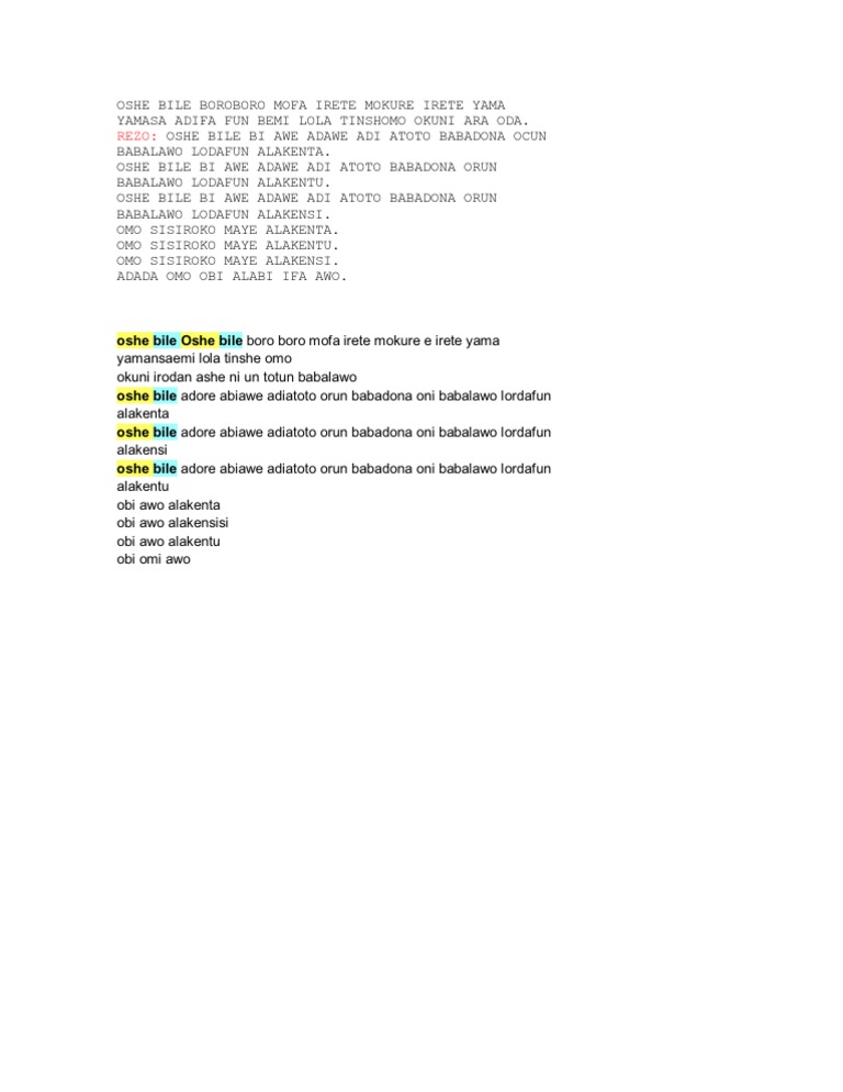 Oshe Bile Bi Aw. Oshe-bile bi ague adague babadona orun adiatoto oni babalawo lordafun a la kenta oshe-bile bi ague adague babadona orun adiatoto oni babalawo lordafun a la kentu oshe-bile bi ague adague babadona orun adiatoto oni babalawo lordafun a la kensisi omo sisiroco moye a la kenta omo sisiroco moye a la kentu. No ande con burlas ni cuentos porque entre los oyentes dicen que es un alabancioso.