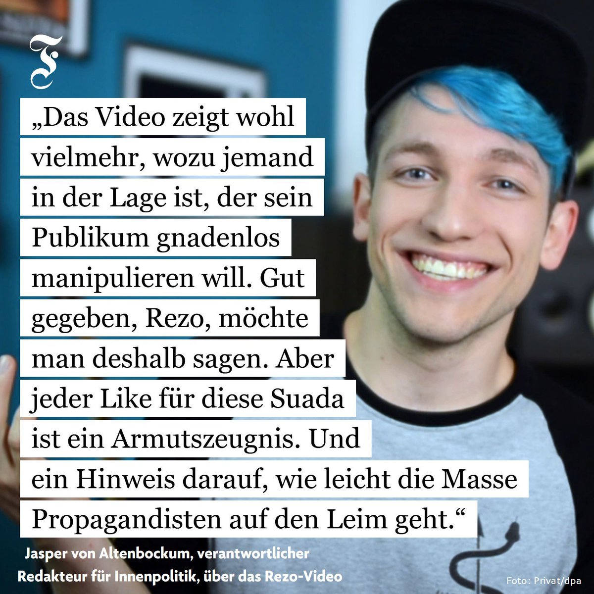 Rezo Twitterissa Hey Faznet Ich Glaube Eure Glaubwurdigkeit Leidet Wenn Ihr Weiterhin Personen Reichweite Gebt Die Rechte Lugen Uber Mich Verbreiten Und Dabei Videos Von Nem Rechten Kanal Teilen Wo Fur Satze