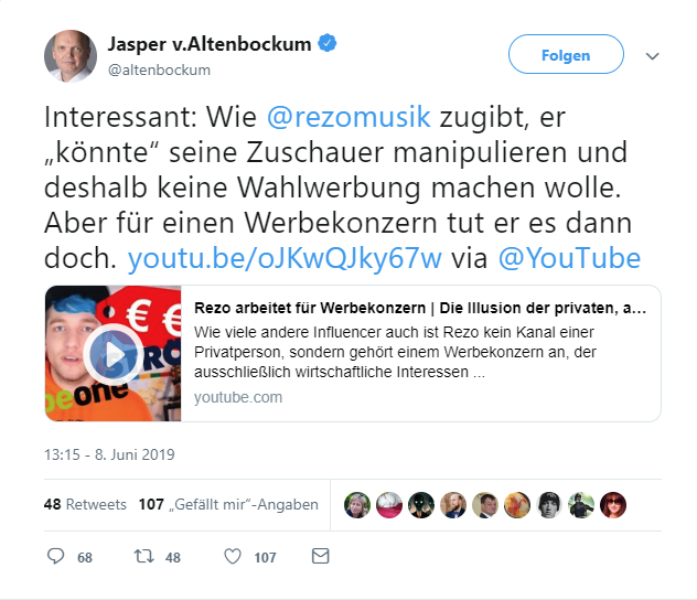 Rezo co ALL IN - Artist Management GmbH Im MediaPark 6A. Los ltimos tweets de Rezo. Und andere ZeitungenHaben auch ein Video auf seinem Kanal gemacht.