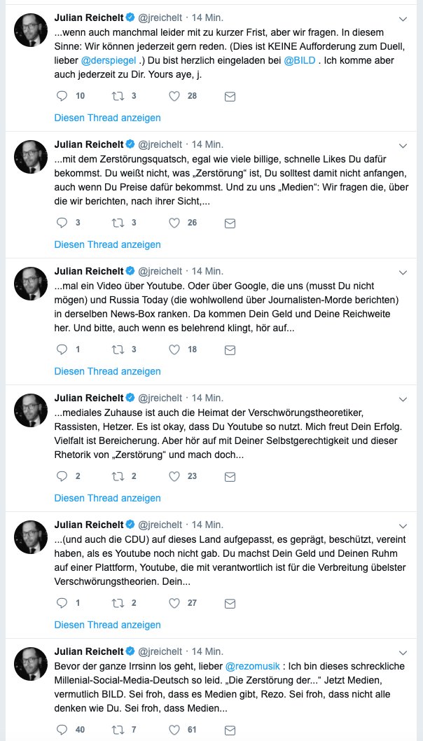 Julian Reichelt On Twitter Bevor Der Ganze Irrsinn Los Geht Lieber Rezomusik Ich Bin Dieses Schreckliche Millenial Social Media Deutsch So Leid Die Zerstorung Der Jetzt Medien Vermutlich Bild Sei Froh Dass Es Medien