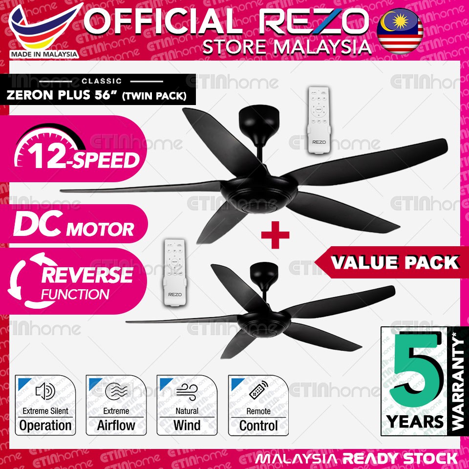 Rezo Zeron Plus Ceiling Fan 5 Years Warranty 56 5b 5 Blades Single Pack Remote Control Dc Motor 12 Speeds Shopee Malaysia