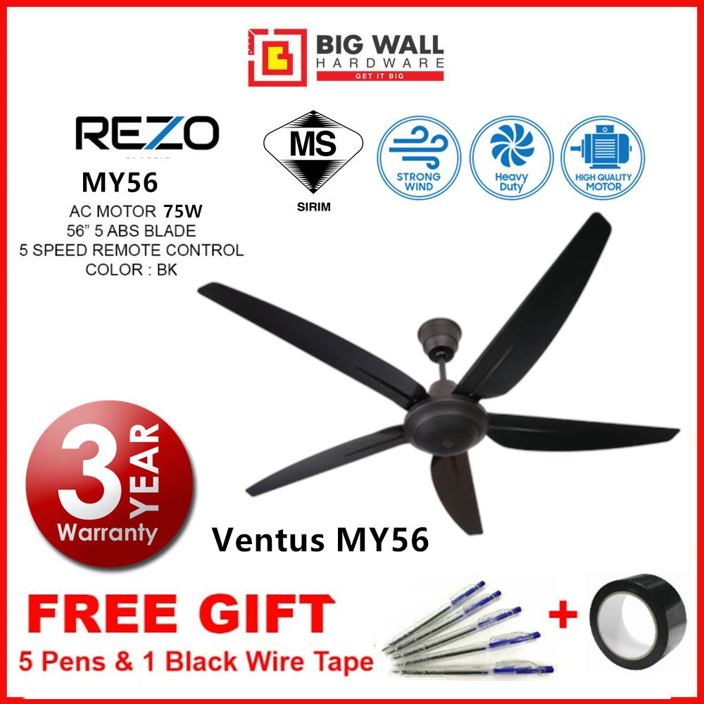 Rezo My56 Ventus 56 5 Speeds Ceiling Fan With Remote Control Shopee Malaysia