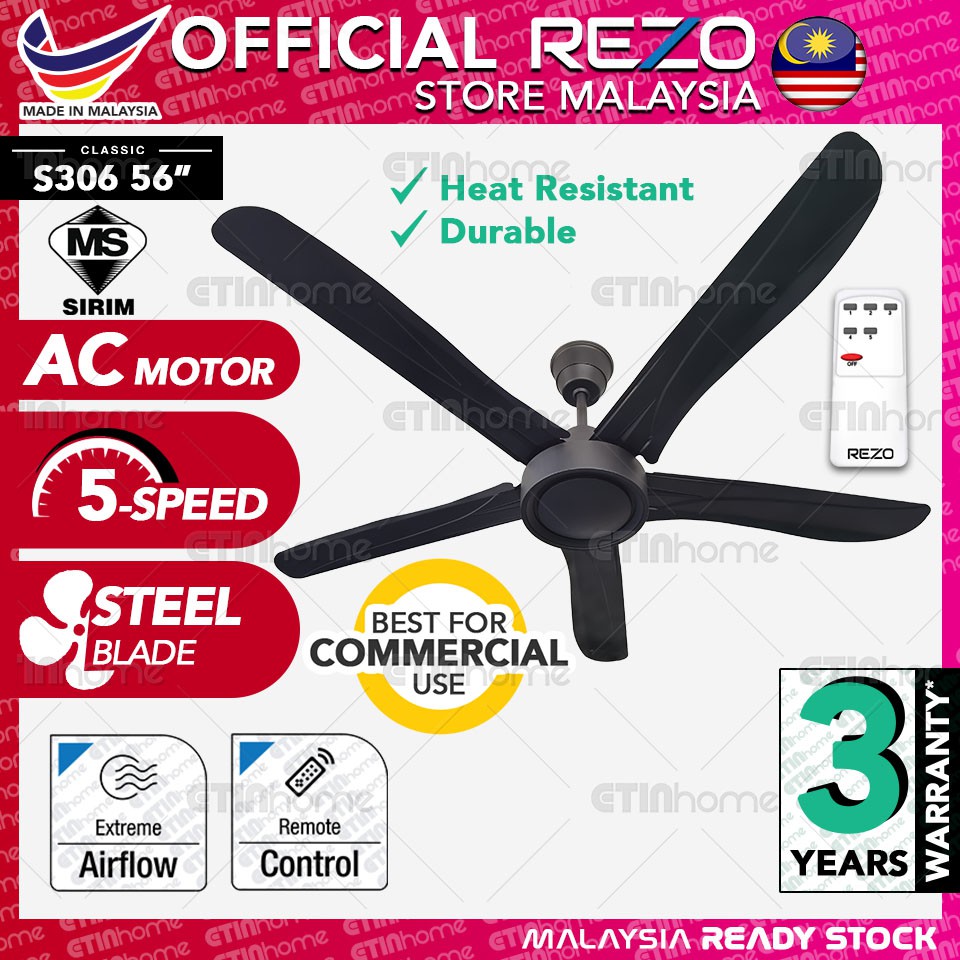 New Rezo 56 Ceiling Fan Ac Motor S300 Metal Blade P300 Abs Blade 3 Years Warranty Heavy Duty Motor Shopee Malaysia
